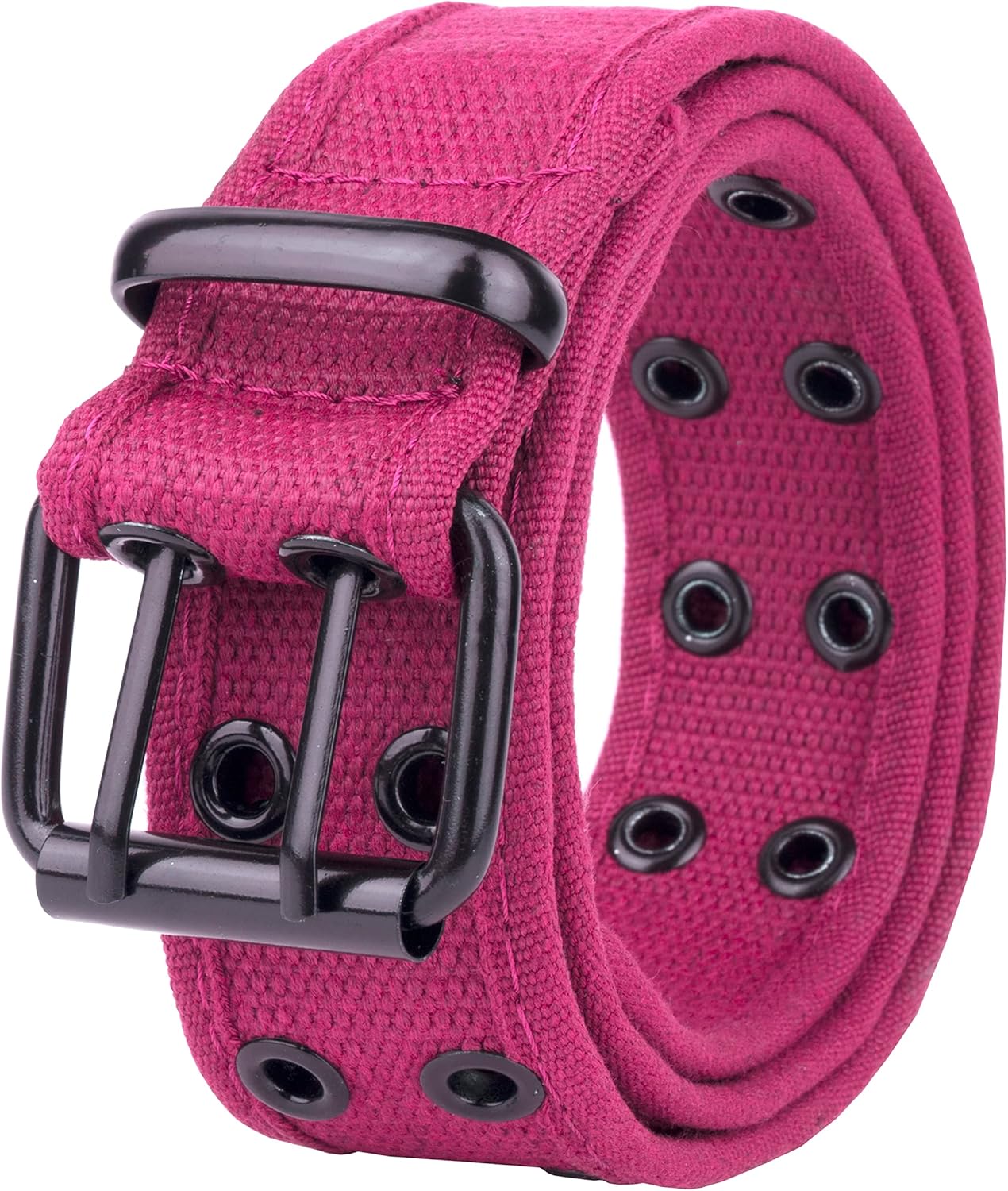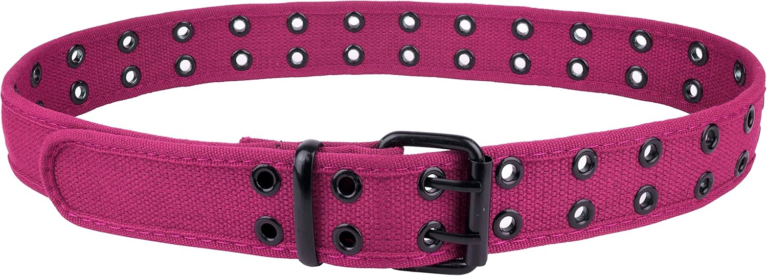 - Canvas Web Belt /Black Double Grommet Holes / Metal Buckle