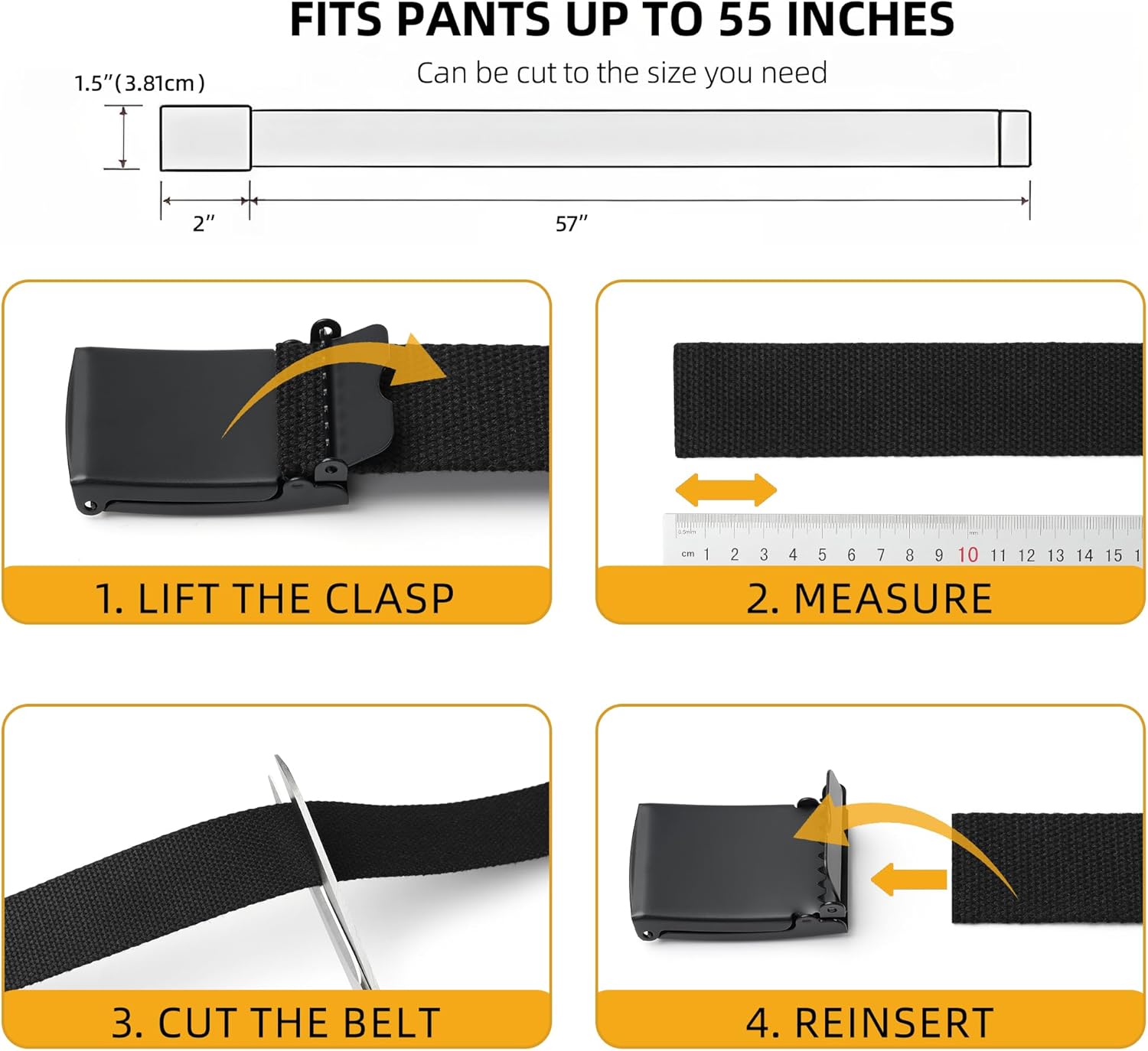 Cut To Fit Canvas Web Belt Size Up to 52″ with Flip-Top Solid Black Military Buckle