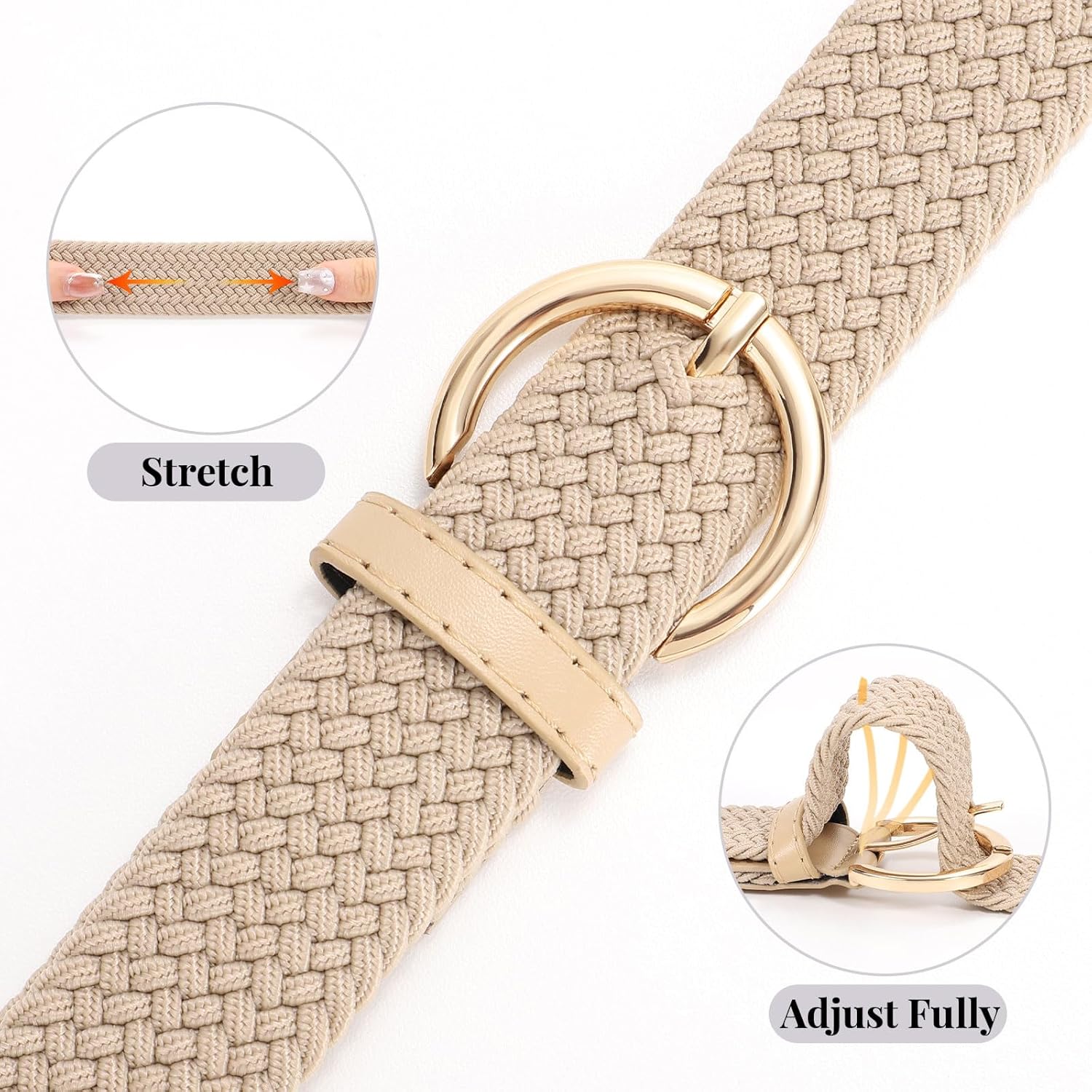 - Elastic Woven Belt—There are no holes in the woven belt,woven pattern lets you adjust to any size. The braided belt is stretchy and breathable, it could be used for any seasons.