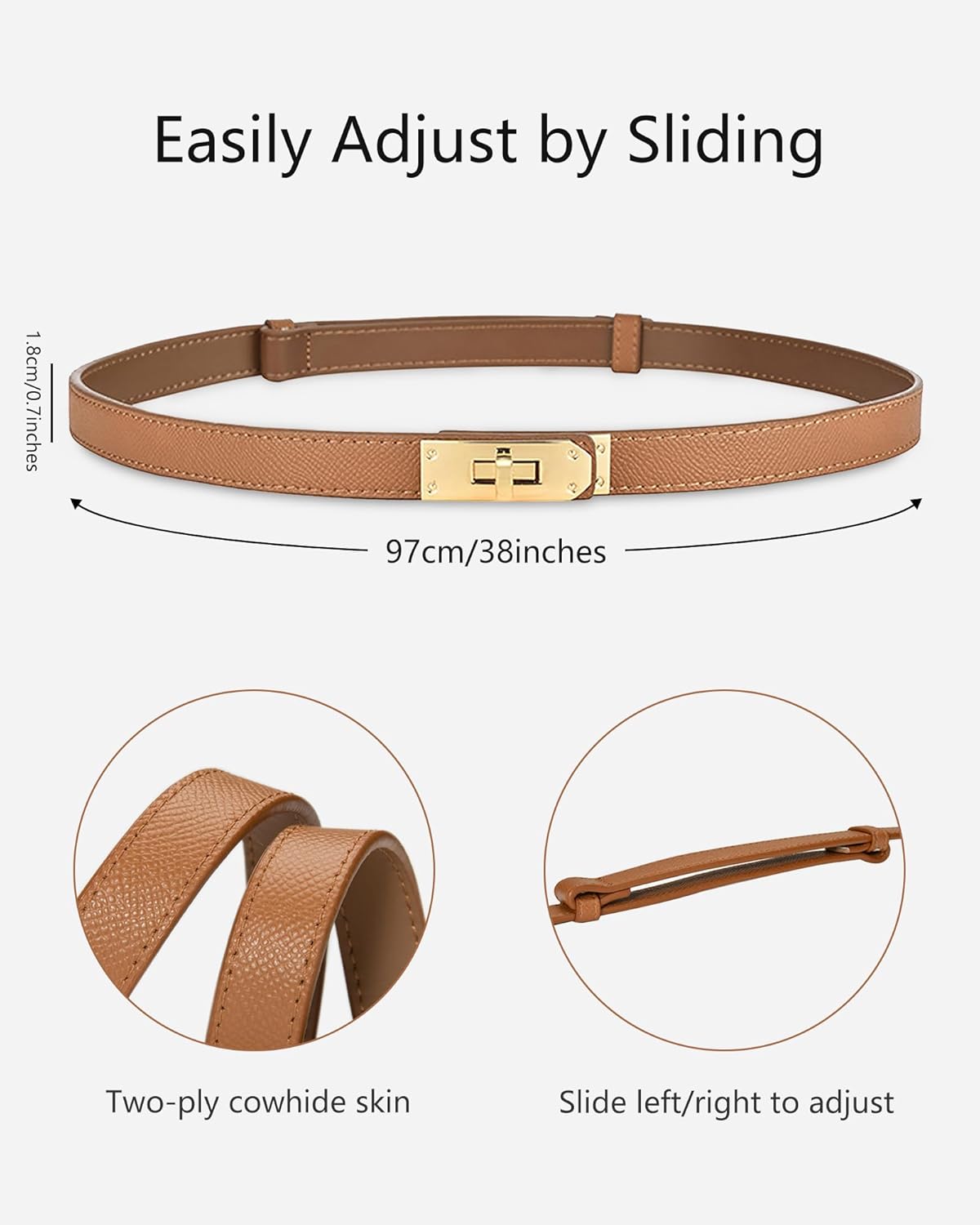 - VERSATILE AND EASY TO MATCH: This thin leather belt can be worn on your waist or hips, effortlessly complementing a range of outfits in any season. Its adjustable design ensures a perfect fit, whether with dresses, tops, or pants. A versatile and chic accessory for all occasions