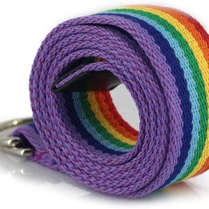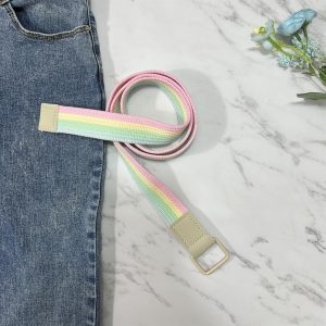 Colorful Rainbow Canvas Belt with Double Square Ring Buckle for Men Women Girls Causal Belt