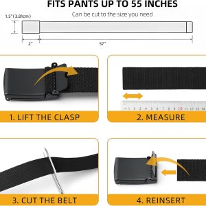 Cut To Fit Canvas Web Belt Size Up to 57″ with Flip-Top Solid Black Military Buckle 1.25 inch wide